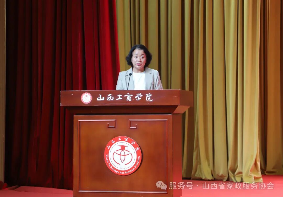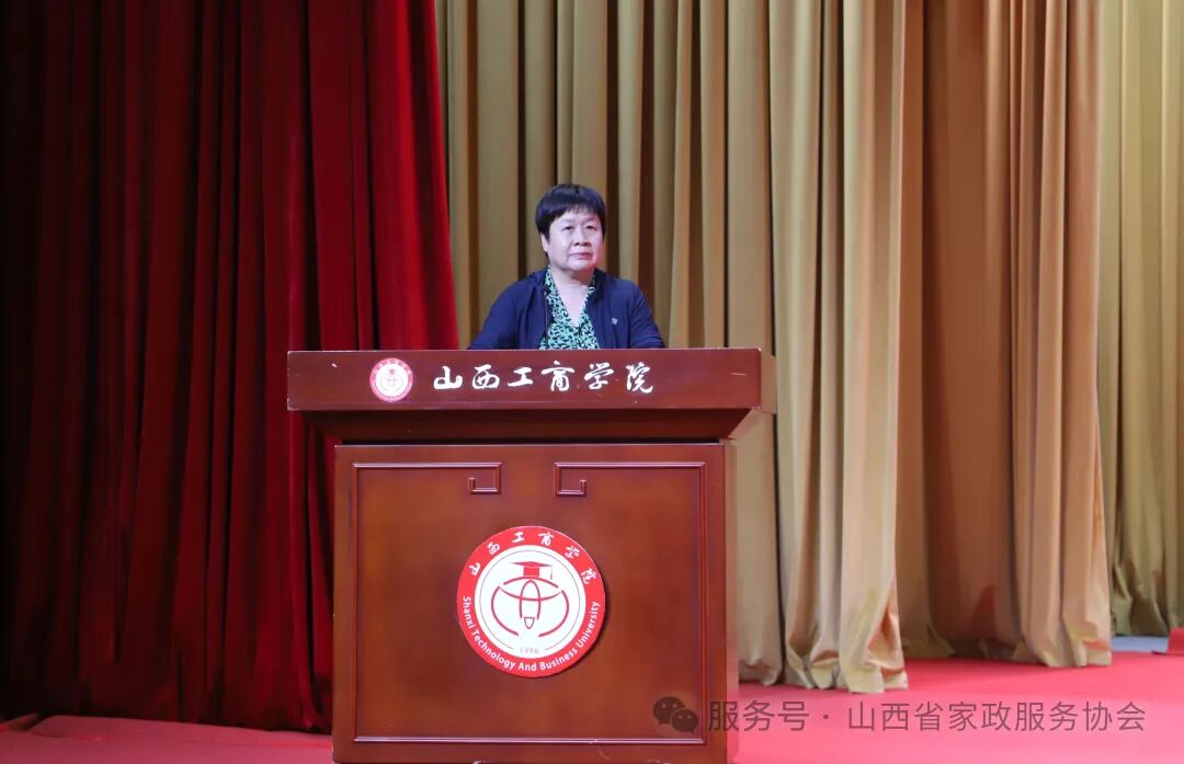 山西省家政服务协会会长郑宝兰也出席活动并发表讲话。她着重强调,无论面临何种挑战,各方都应共同支持山西工商学院保住“家政本科”这一珍贵的“独苗”——若失去这一本科专业支撑,家政领域的产教融合便会沦为空谈、流于形式。自担任会长以来,郑宝兰始终积极推动山西省家政行业的产教融合工作,主动搭建校企合作交流平台。不仅如此,她还亲力亲为投身人才培养一线:为大一新生开设行业认知讲座,帮助新生建立对家政专业的初步了解;为即将毕业的学生辅导毕业论文,助力其顺利完成学业;走进课堂为大学生授课,分享行业实践经验;同时,还为大学教师提供“见习”机会,帮助教师提升实践教学能力。